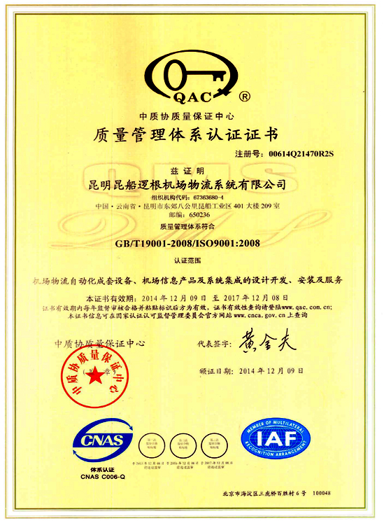 質(zhì)量體系認(rèn)證證書(shū)